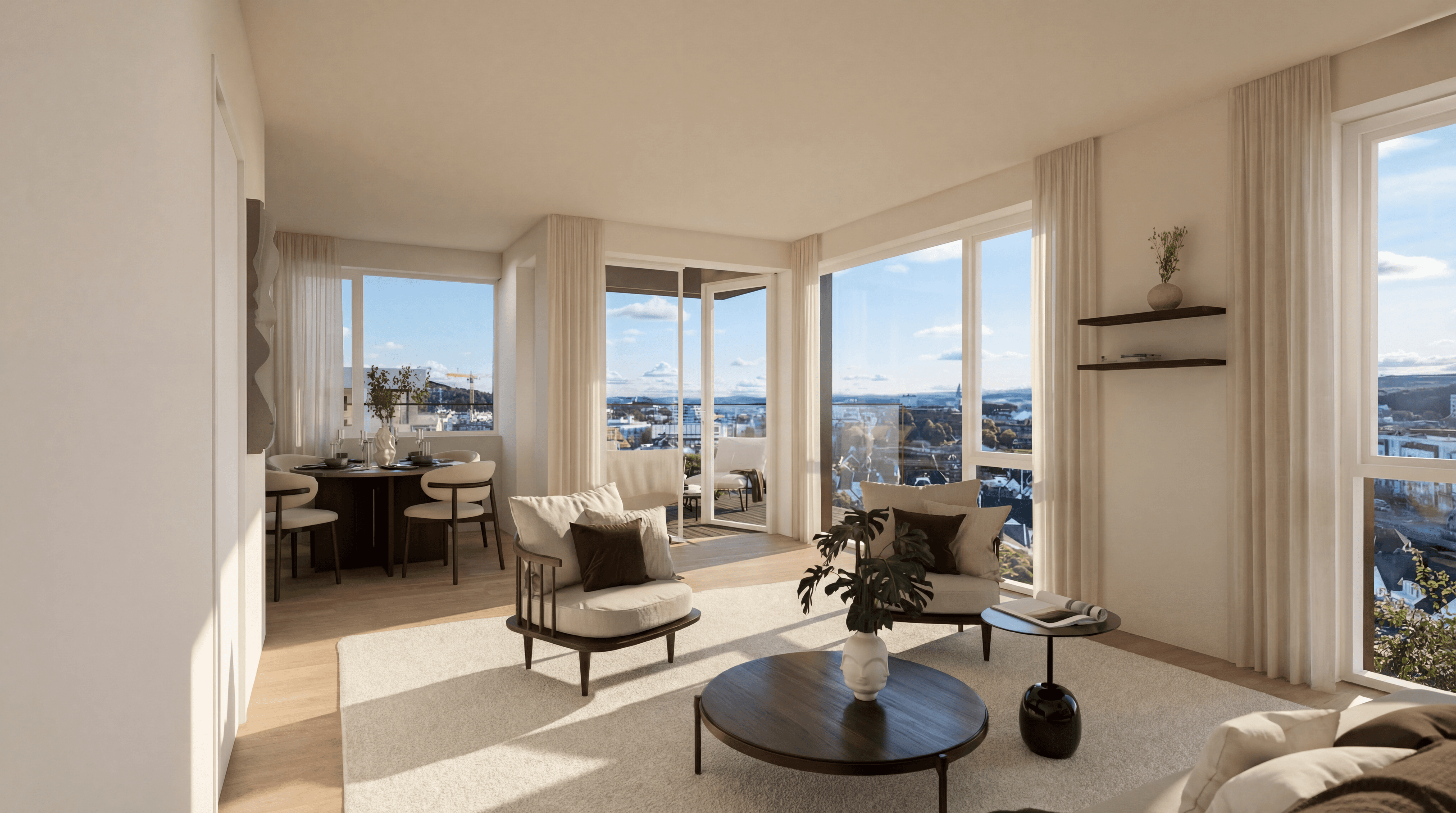 Simuler innsyn, utsikt og siktakser fra alle vinkler – sikreutsynskvalitet for alle boenheter.Simulering av sol og skygge